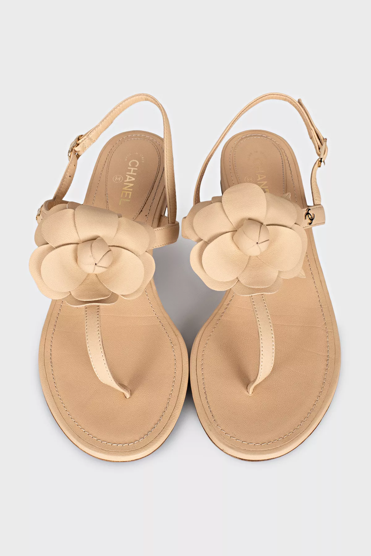 Chanel Шкіряні сандалі декоровані квіткою