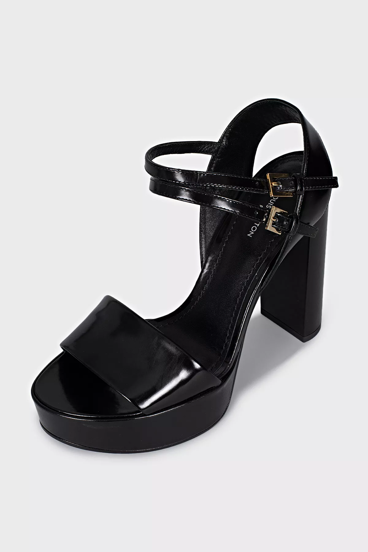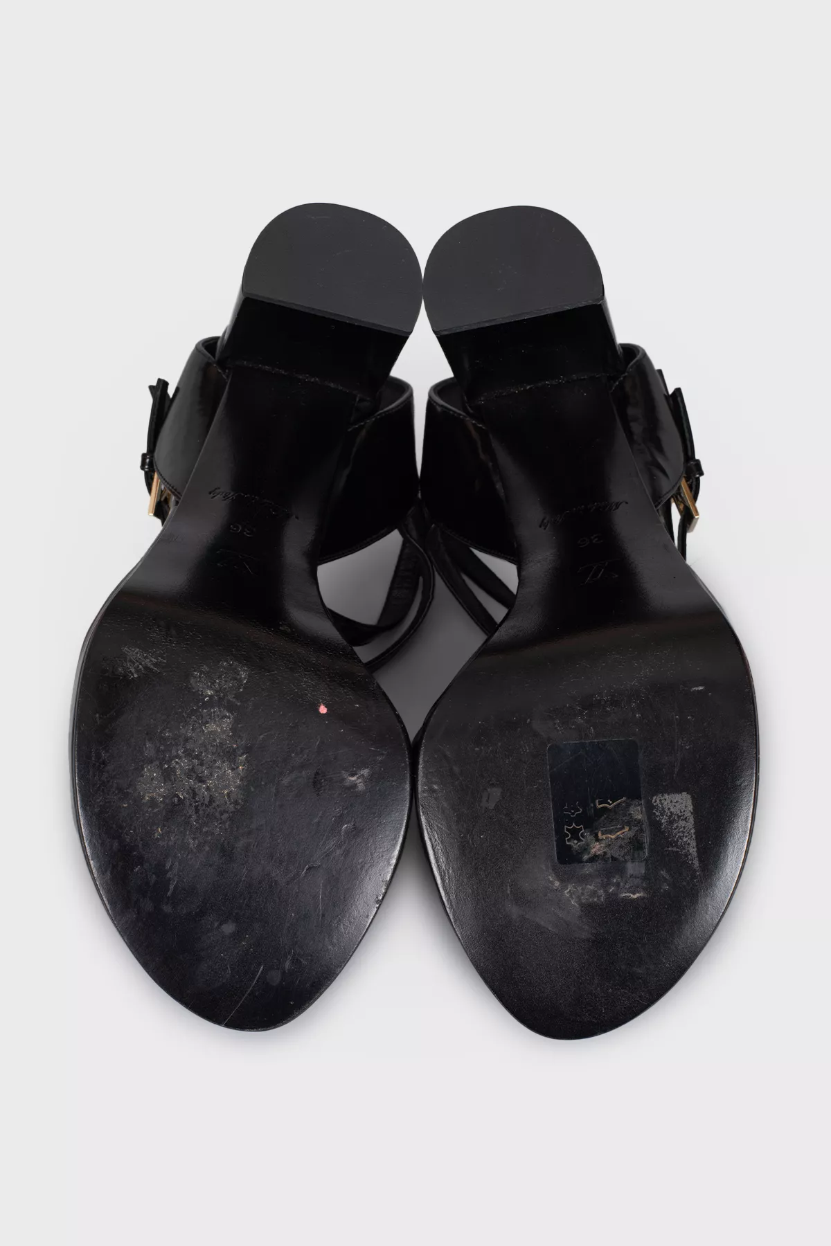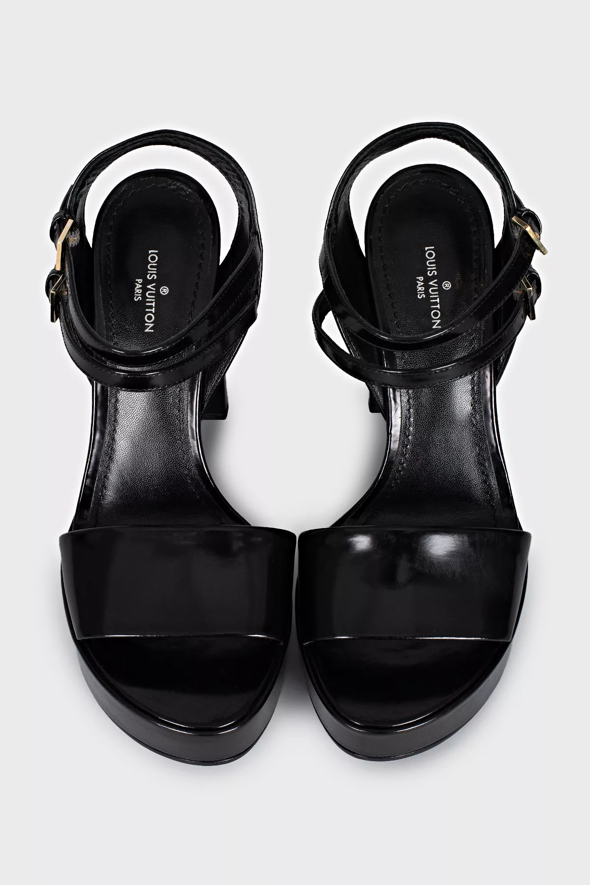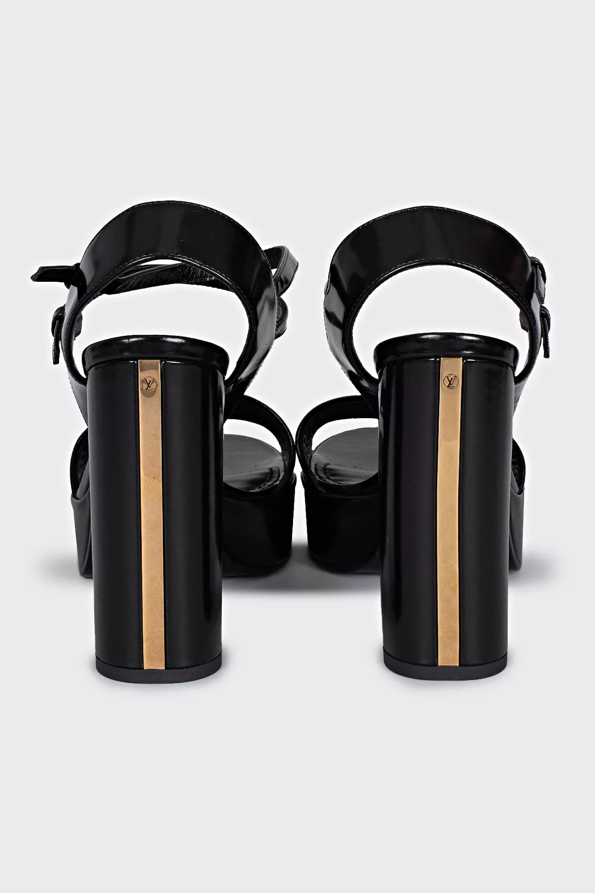 Louis Vuitton Шкіряні босоніжки із золотистим елементом на підборах