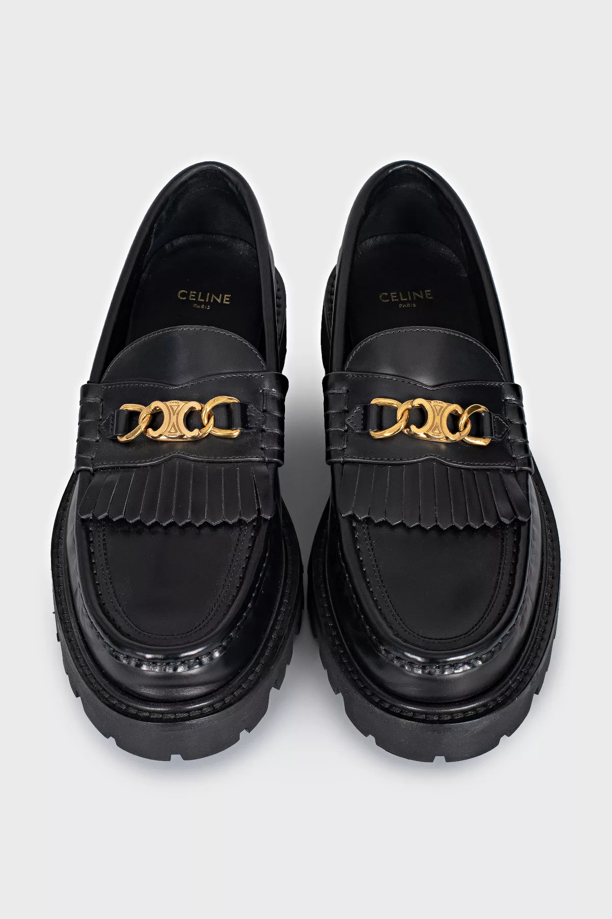 Celine Шкіряні лофери із золотистим логотипом